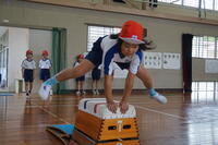 【7月17日】体育の学習で跳び箱運動に挑戦しました。苦手な児童にとっては恐怖心があるなど得意不得意がはっきりする運動です。踏切や手をつく位置、着地の仕方などを学び、後は思い切って跳びます。みんな積極的に挑戦し、上手に跳ぶことができました。みんなよく頑張りました!