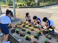 【9月3日】 幸ヶ丘小では子どもたちが、毎朝落ち葉の掃除をボランティアでしてくれます。今朝は、落ち葉掃除をお休みして、花壇に花を植えました。夏休みもあってしばらく花壇に花がなかったので、久しぶりに花壇がきれいになりました。これからきれいな花を咲かせてくれると嬉しいです。