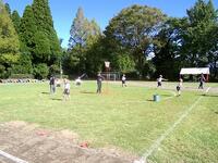 【1月23日】 体育の授業でベースボール型ゲームに取り組んでいます。ポールの上に置かれたボールを手で打ち、何塁まで進めるかで得点を競います。1年生から6年生まで全員で取り組むため、みんなが楽しく取り組むことができるようにルール等を工夫しました。プレイしている児童からは「きゃー!きゃー!」と歓声が上がり、応援している児童は「フレー!フレー!」と全力の応援が始まります。楽しいゲームに、みんなの顔も自然と笑顔になっていました。