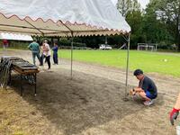 【9月21日】 明日の運動会(こすモーピック2024)に向けて前日準備が行われました。ここ数日ずっと天候が悪く、曇りや雨ばかりの毎日です。前日の今日は青空も見られ保護者と地域の方々に来ていただき準備を行いました。天気予報では明日は雨でしたが、朝のうち曇りマークも出ており、少しでも外でやらせてあげたいということで、テント立てと雨が降ってきた時用に体育館の両方の準備をしていただきました。多くの方に参加していただいたお陰で短時間で準備も終わりました。保護者、地域の皆様、ご協力ありがとうございました。明日、雨が降らないといいなぁ、、、