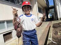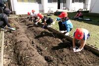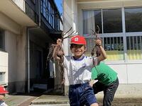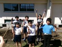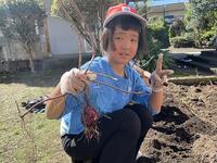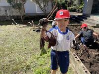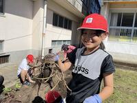 【10月9日】 春に植えたサツマイモのつるが畑(花壇?)いっぱいに広がり、収穫の時期になりました。本日、午前中に1~4年生のみんなで芋ほりをしました。まずは、昨日芋のつるを切っておいたので、後は土の中から掘り起こすだけです。とは言え、土の中にしっかり埋まった芋はなかなか簡単には掘り起こせませんでした。それでも、がんばって土を掘り、真っ赤なサツマイモが取れた時にはとても嬉しそうでした。掘った芋は夕方、焼き芋にしてみんなで食べました。自分達で育てて、自分達で掘ったサツマイモは格別に美味しかったようです。