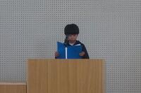 *集会では、作品募集の表彰やこれまでお世話になったエミリー先生のお別れの挨拶もありました。