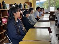 【2月19日】 本日、入学説明会を実施しました。次年度入学する6人の子ども達が保護者に連れられて学校へやってきました。みんなちょっぴり緊張気味で、それがまたかわいらしかったです。説明会の前に赤白帽子の贈呈があり、説明会が終わると給食試食会がありました。みんな皿うどんをおいしそうに食べていました。みんなが元気に入学してくるのを待ってるからね!