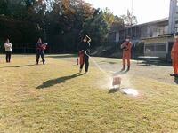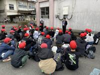 【12月5日】 空気が乾燥し、火事の増える季節です。毎年この時期に火災の避難訓練を実施しています。今回はランチルームから出火した想定での訓練でした。非常ベルを鳴らし、全体に知らせ運動場に避難します。「おはしも(押さない、走らない、しゃべらない、戻らない)」を合言葉にみんな素早く避難できました。今回は消防の方にもたくさん来ていただき「消火体験」と「煙体験」もあわせて実施しました。全児童が実際に消火器を操作し消火(模擬)する体験を行いました。また、教室に充満した煙の中を姿勢を低くして移動する体験もしました。煙の中は1mも視界がなく、突然目の前に消防の方が現れたり、机にぶつかりそうになったりしました。とてもよい経験ができました。避難訓練で常に言っている「自分の命は自分で守る」を意識して、たくさんのことを学んだ避難訓練になりました。