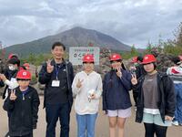 【10月31日】 鹿児島最初の見学地「有村溶岩展望所」です。目の前に大きな桜島がそびえています。近くにはライオン岩と言われている溶岩の塊もありました。