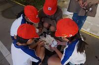 【9月2日】 本日、結団式があり団の色が決定しました。本校は赤と白の2色です。子ども達はそれぞれ、なりたい色があるようで、決まる直前は祈るようなポーズをする子もいました。色は風船を割り出てきた紙吹雪の色で決まります。みんなの掛け声で団長が風船を割ると同時に歓声が起こりました。色が決まると団長が運動会への意気込みを言いました。これから運動会まで、一致団結して様々なことに頑張ってくれると思います。その後は、太鼓の時に着る衣装合わせをしました。はっぴを着た子ども達を見ると、とてもかっこよく、どんな演奏をしてくれるのかますます楽しみになりました。