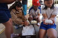 【11月30日】 今日はかなり冷え込み、今年初めて山頂に雪が被りました。午前中には、保護者の方がえびの高原の雪を届けてくださり、子ども達は今年初めて見る雪に大喜びでした。雪だるまを作ったり、丸めて投げたりと冷たいのも忘れて大はしゃぎでした。これから本格的な冬になり、幸ヶ丘小も真っ白になる時があると思います。その時は雪合戦でもして、みんなではしゃぎたいと思います。