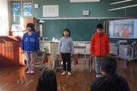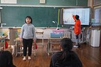 【12月9日】 低中高学年ごとに行われる学年集会。今回で3回目(最後)になる低学年の発表がありました。鍵盤ハーモニカやハンドベルの演奏や、算数で学習した計算問題(1年生~足し算引き算、2年生~かけ算九九)を発表しました。少人数とはいえ人前で発表するのは緊張します。それでもみんなはきはきをした声でしっかり発表できていました。1・2年生の皆さん、立派な発表でした!