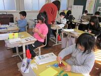 【2月4日】 1・2年生が図画工作の時間に単元「ころころゆらゆら」で創作活動に取り組みました。デザインを考え、切ったり貼ったりして作品が出来上がると、みんなで実際にころころ転がして遊びました。楽しく活動する児童の姿はとても生き生きとしていました。
