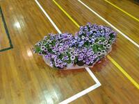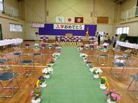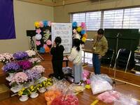 【4月10日】 明日はいよいよ入学式です。新しい1年生に喜んでもらうために児童、職員、地域の方みんなで準備をしました。たくさんの花を体育館に並べ、きれいな会場ができあがりました。かわいい1年生がやってくるのが楽しみです。