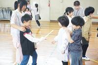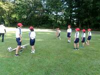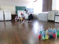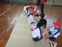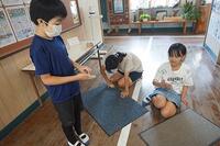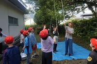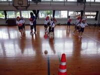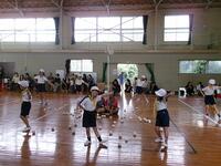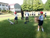 【9月16日】 「さこんたろう」って聞いたことありますか?本校の運動会の種目には欠かせない競技の一つです。二人一組で行う競技で、一人がシーソーのような板の上にボールを乗せ、反対側を思い切り踏み込みます。もう一人はかごを背負い、跳ね上がったボールをかごにキャッチします。子ども達にはやや難しいのでかごを前に抱え行っています。最初は怖いと言っていた1年生も次第に上手になっていきました。2年生以上はこれまでの経験もあり、なかなか上手です。本番では保護者や地域の大人の人と一緒に競技します。さぁ、上手にできるでしょうか。