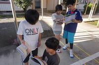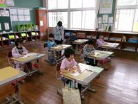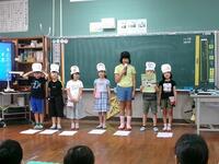 【8月25日】 夏休みが終わり、本日より1学期後半が始まりました。転入生1名を加えて15名でのスタートです。まだまだ休みが続いてほしいとほとんどの子どもが言っていましたが、久しぶりに友達と会って話をする顔は満面の笑みでした。集会では校長から「挑戦」や「協力」をキーワードに、9月の終わりにある運動会に向けて頑張っていこうと話がありました。集会後には、早速ABの団分け(メンバー)の発表があり、盛り上がっていました。