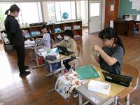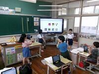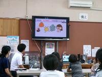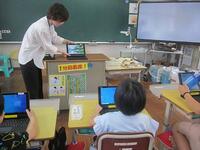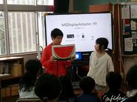 【10月23日】 新しくタブレットで活用するソフトウェアの学習を、3~6年生の児童が、ICTサポーターの先生と一緒にしました。初めはたどたどしい手つきで操作していた子ども達でしたが、気が付くと自分で自己紹介カードを作成するところまでできていました。子ども達は操作を覚えるのがとても早いですね。これからの学習でたくさん活用していくことでしょう。