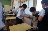 【9月1日】 9月1日の「防災の日」にあわせて、本校でも地震の避難訓練を行いました。突然の放送に驚いている児童もいましたが、みんな素早く机の下にもぐったり、大声を出すこともなく静かに待機したりと日頃の訓練の成果が見られました。真剣な表情や素早い行動が見られ、充実した訓練ができました。地震はいつ来るか分かりません。登下校や休日など、日頃からどのような行動をとればよいか話し合っておくことが大切ですね。