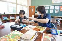 【6月5日】 高学年になると家庭科の学習が始まります。今回は裁縫の学習に、児童のおばあちゃんと地域の方お二人に来ていただきました。なみ縫いや玉止めの練習としてフェルトでおにぎりを作りました。児童は手伝ってもらったり、コツを聞いたりして上手に作品を作っていました。お手伝いに来てくださったお二人の方には、改めて地域の方の力を借りて学校が成り立ってるなと感じたところでした。