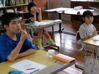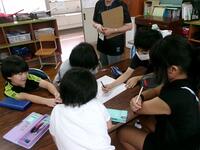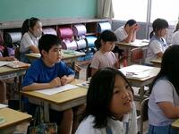 【7月7日】 9月の終わりに行われる運動会に向けて、全校でスローガン作成の話合いを行いました。「元気・みんな・協力・明るく・・・」などキーワードを出し合いました。一人一人思い思いの言葉がたくさん出てきました。途中で時間が来てしまったので、後は、高学年の児童が一つにまとめてくれることになりました。発表は今日の給食時間だそうです。どんなスローガンができあがるのか楽しみです。ドキドキ・・・