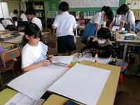 【6月16日】 いこまタイムの時間に生駒名水の見学で学んだこと等を話合い、まとめる活動を全校で取り組んでいます。タブレットが導入されてから、児童のまとめる活動はタブレットがほとんどで、模造紙にまとめる活動を知らない、あるいは経験がない児童がいます。そこで、今回は意図的に模造紙にまとめる活動に取り組むことにしました。様々なまとめ方を経験し、タブレットのよさを再確認したり、内容によって、よりよいまとめ方を選択する力が付いたらと思っています。