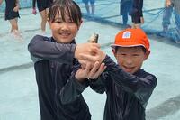 【6月29日】 7月の参観日がありました。どのクラス も元気に、楽しく授業に参加していました。暑い中、多くの保護者の方に見に来ていただき、ありがとうございました。また、午後は魚のつかみ取りを行いました。学校近くのプールにニジマス、鯉、ウナギを放し、子ども達がキャーキャーと歓声を上げながら、必死に追いかけましていました。最初はなかなか捕まえられませんでしたが、次第に上手になり、全ての魚を捕まえることができました。捕まえた魚は親子で捌き塩焼きにしていただきました。準備から本番までお世話してくださいました保護者の方、楽しい時間をありがとうございました。