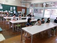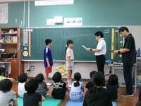 【7月18日】 夏休み前の締めくくりとして全校集会を行いました。校長からは、この4ヶ月間、みんなが仲良く過ごせたことや、水泳の場面を例に、友達と競争しお互いに伸びていく姿や苦しいことに負けない姿が見られたことを称賛しました。夏休みに向けての生徒指導面や健康面についての話もみんな真剣に聞いていました。また、作品応募や校内の取組についてよい結果を残したことや頑張ったこと等を表彰しました。4月からの4ヶ月「幸せの学校」が継続できたことをとても嬉しく思います。