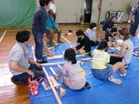 【7月18日】 放課後子ども教室主催の木工教室が行われました。毎年行われているイベントで、今年はハンガーラックを作成しました。保護者や地域の方にも手伝っていただきました。暑い中、汗をかきかき作業をしていましたが、親子で一緒に行う活動ということで子ども達はとても嬉しそうでした。立派な作品ができて、参加した人みんな大満足だったようです。
