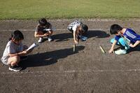 【10月9日】 3・4年生が理科の学習で「太陽とかげのできかた」の学習をしていました。日常的に目にしている太陽と影ですが、改めて学習として着目すると、影が動くことや、ひなたと日陰で地面の温度が違うことなど様々なことに気付きます。観察や実験から、それらの特徴を学ぶ単元です。教室を飛び出しての学習は楽しそうでした。