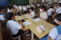 【6月25日】 毎年、この時期に実施している心肺蘇生法の講習を行いました。消防の方3名に来ていただき、胸骨圧迫や人工呼吸、AEDの正しい使い方等を学びました。毎年、行っているこの講習ですが、新しい内容も教えてくださり、とても有意義な時間となりました。緊急時に冷静に対応できるように繰り返し講習を受けることが大切だと改めて感じました。
