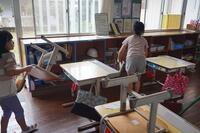 【10月10日】 1学期間お世話になった学校にお礼の気持ちを込めて大掃除をしました。教室や廊下を中心に普段やっていない隅々まで丁寧に掃除しました。綺麗になった教室も嬉しそうでした!