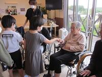 【10月30日】 1・2年生が、学校の近くにある老人ホーム「生駒の杜のかいどう」を訪問しました。毎年恒例の行事で、1,2年生の子ども達が楽しみにしている行事の一つです。運動会で踊ったダンスを発表したり、一緒に遊んだりしました。おじいちゃんもおばあちゃんも、子ども達も楽しい時間を過ごすことができたようです。のかいどうの皆様、お世話になりました。