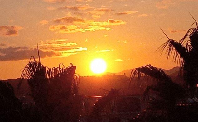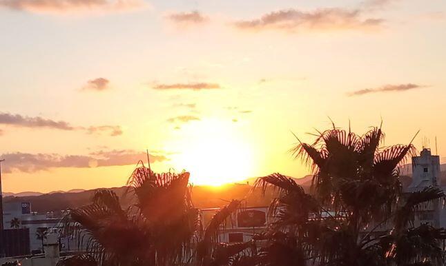 朝日にカメラを向けると鳥が飛んでいました。カラスも飛んでいるシルエットはかっこよく見えますね。(決してカラスがかっこよくないといっている訳ではありません。)