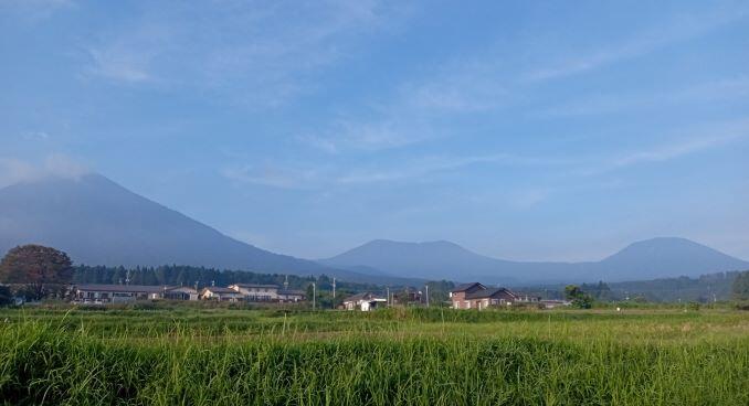 この日の朝の高千穂峰と幸ヶ丘三岳です。台風一過、何だか空気も風景もきれいに洗われた感じがしました。