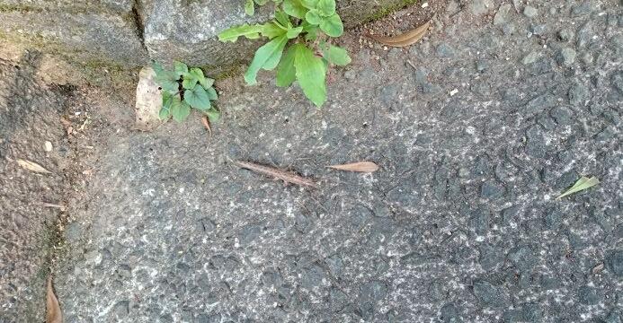 ふと、トラックを見ると、なにやら穴の開いた塊が・・・・、一直線に並んでいました。アリさんが作ったのでしょうか?