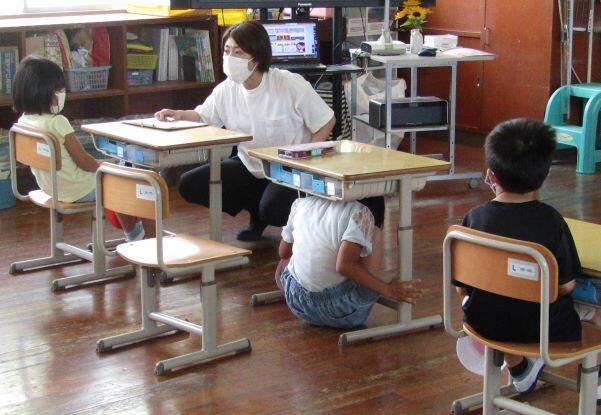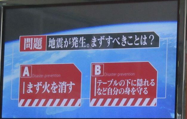 説明がありました。1年生は机の下に隠れる動きをやっていました。