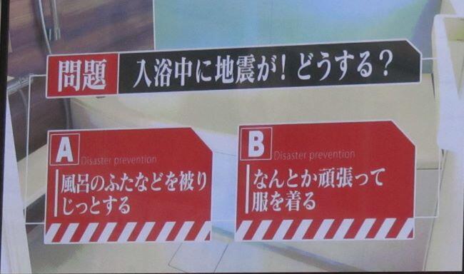 問題① 地震発生!まずすべきことは? 問題② 入浴中に地震発生!どうする?