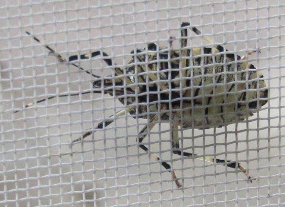 窓のところには下の左の蛾?がいましたし、渡り廊下の出入り口にはクモみたいなのがいました。けれど、足は6本です。