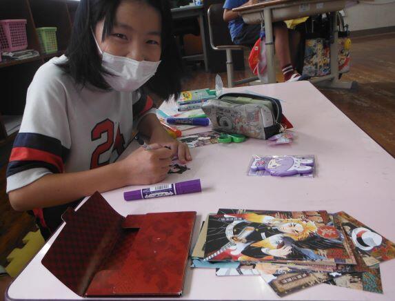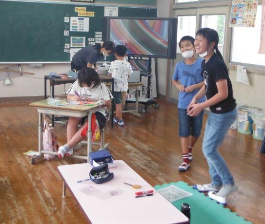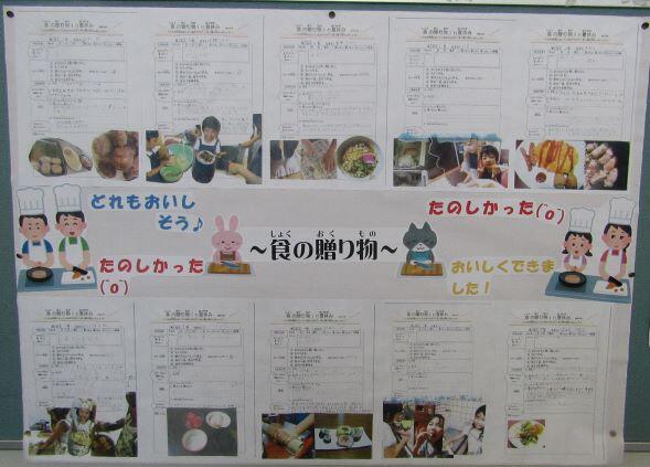 街づくりを推進しています。子どもたちがポスターを描いています。右側は夏休みの宿題でもあった、「食の贈り物」