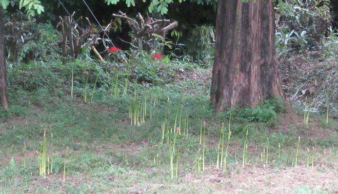運動場の隅の彼岸花もたくさん咲いていました。そろそろ、枯れる花もあれば、今から開く花もありました。まだ、