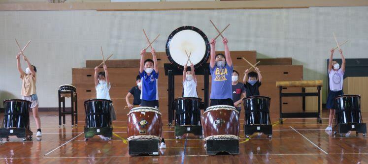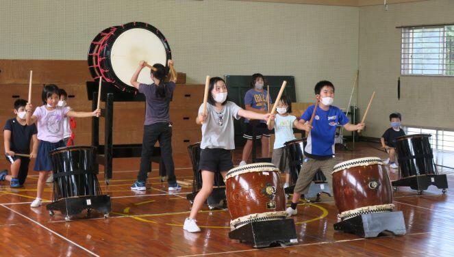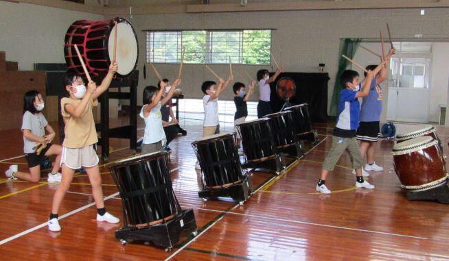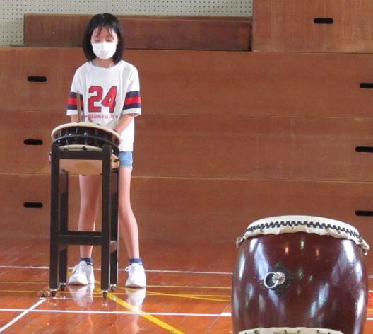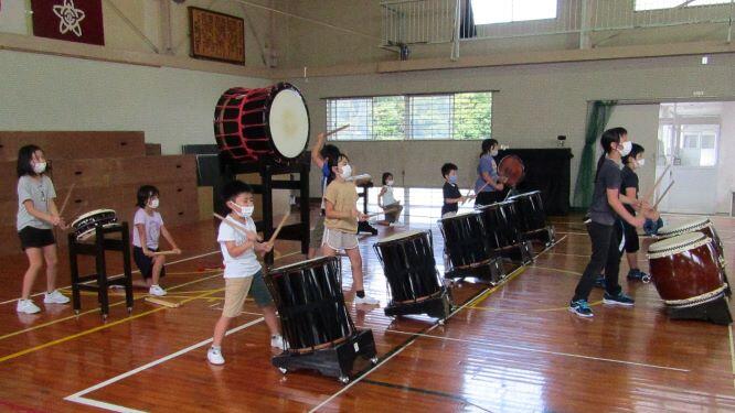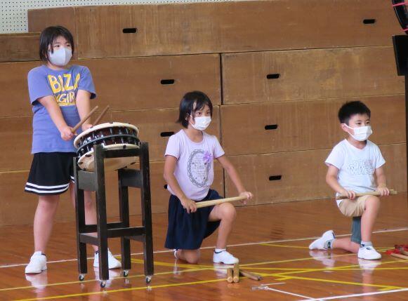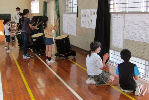 前の日に太鼓の練習がありました。運動会で披露するので、直前に講師の先生に来ていただき、指導してもらいました。