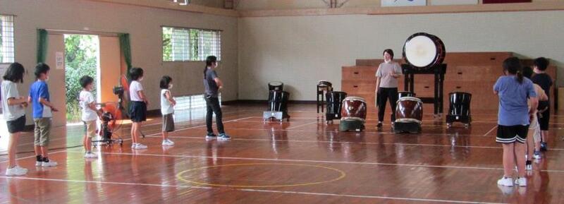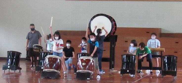 その後、指導をしていただきました。大太鼓です。足をもっと広げて、打つ!かっこよく打つ! やってみると