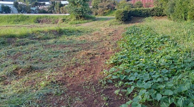 教頭先生はいも畑の草取りです。いものツルが分からないほど、草ぼーぼーでした。(>_<)