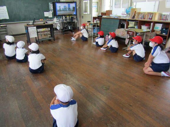 この日は「防災の日」ということで、本校でも「避難訓練(地震想定)」を行いました。ランチルームで、動画を見ました。