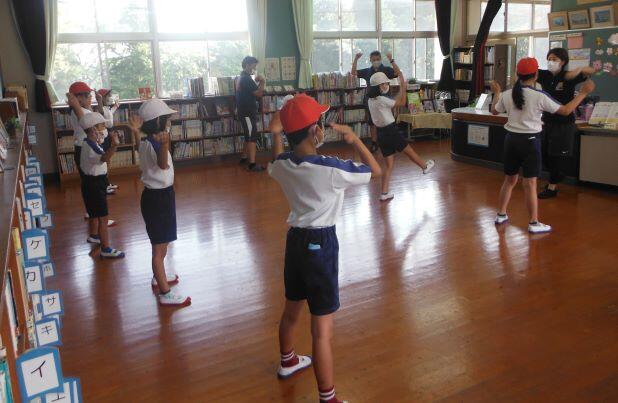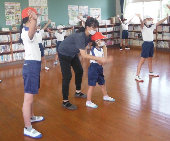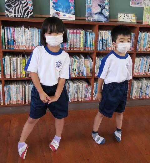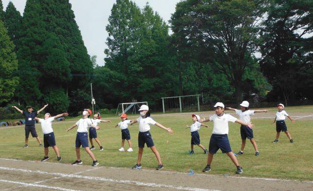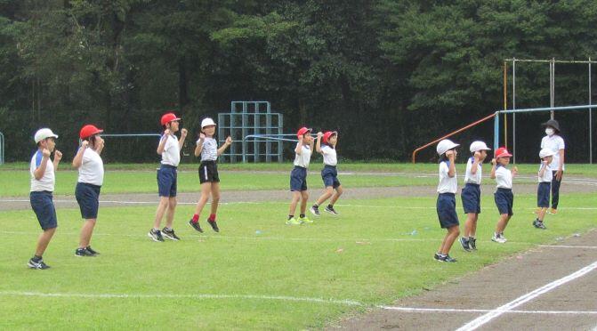 まずはラジオ体操第一です。約1年ぶりなので、一つずつ確認をしながら練習しました。1年生は初めてかな?(^_^;)