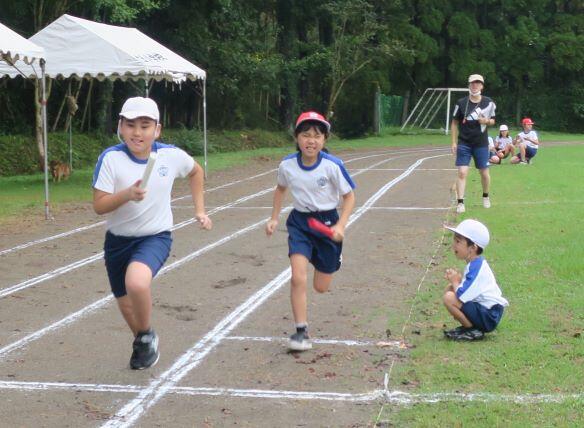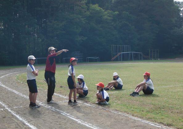 バトンパスの練習をしていました。うまくいったかな?