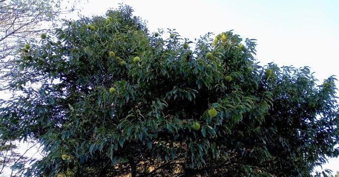 万国旗は3本取り付けます。運動場側の木にはしごをかけて結びます。結構高いところに付けますね。