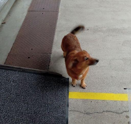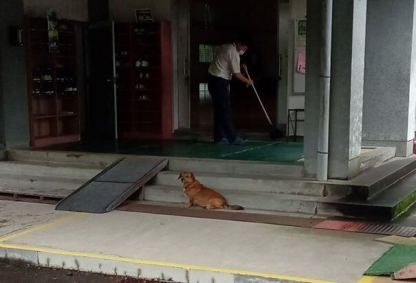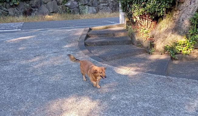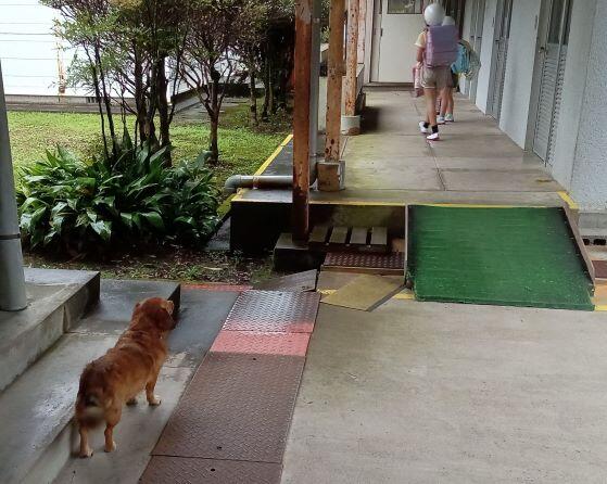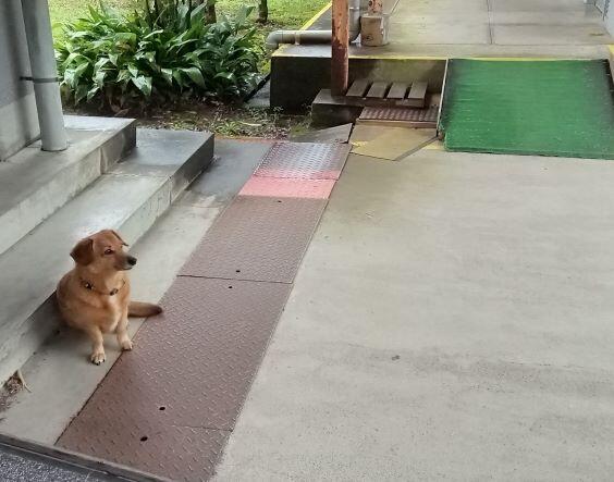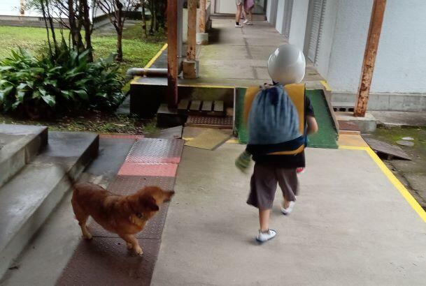 子どもたちが登校してくると、しっぽを振ってそばに近寄ってきます。ちゃんと校舎に入るまで見送ります。決して、