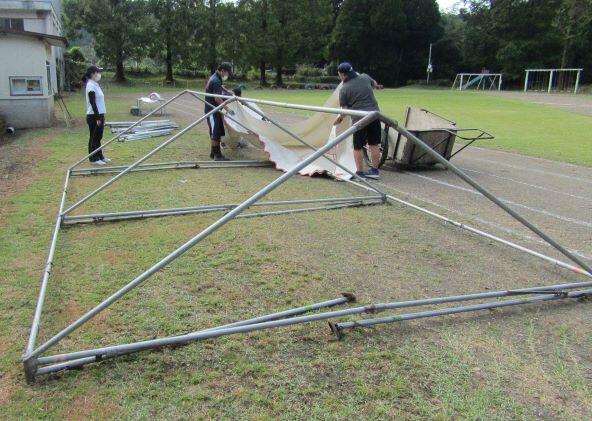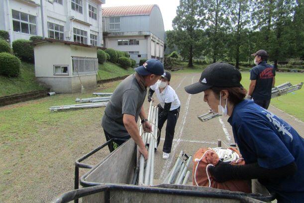 撤収~~! 保護者の方々や中学生が用具等の出し入れを手伝いに来てくれました。中学生は本校出身者ですよ。(^^)