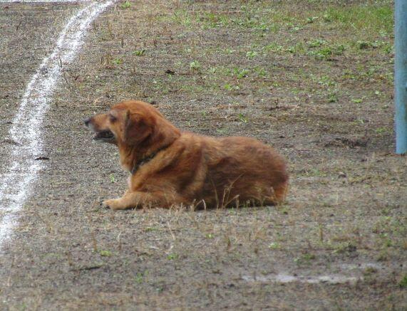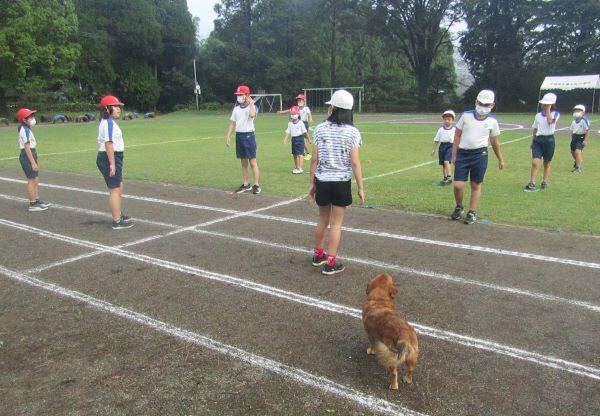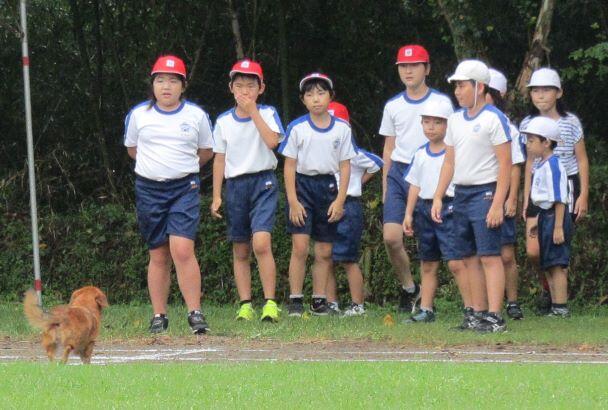 何かいます!そう、見守り犬がこの日には運動場に来てくれて、子どもたちを見守ってくれました。