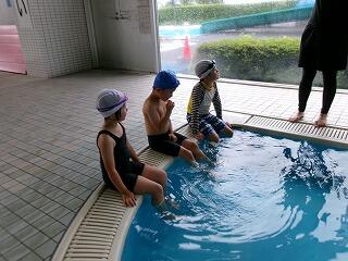 外のプールで学習しました。外のプールは、やっぱりちょっと水が冷たかったです。