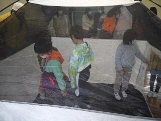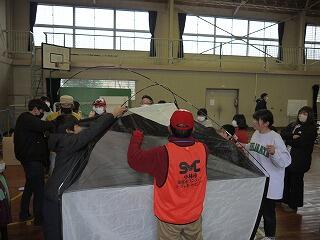 また、百均ショップで揃う非常持出品紹介や段ボールベッド組立、テント組立などを体験させてくださいました。