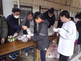 生駒豊原自営消防団の皆さんが非常食の試食をしてくださったり、