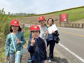 学校の周りの探検を行い、タブレットで写真を撮っていきました。